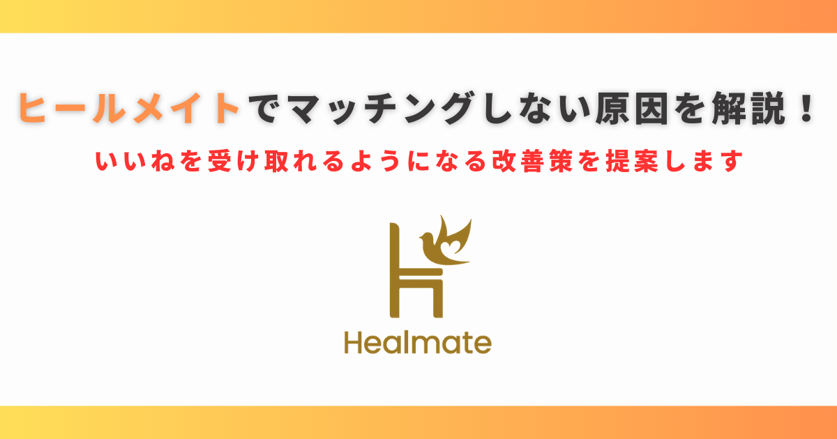 ヒールメイトは使い方やプロフィールの作り込み、いいねの送り方によって結果に差が出やすいアプリです。だからこそ、マッチしない原因を整理して見直すだけで状況が変わる可能性があります。